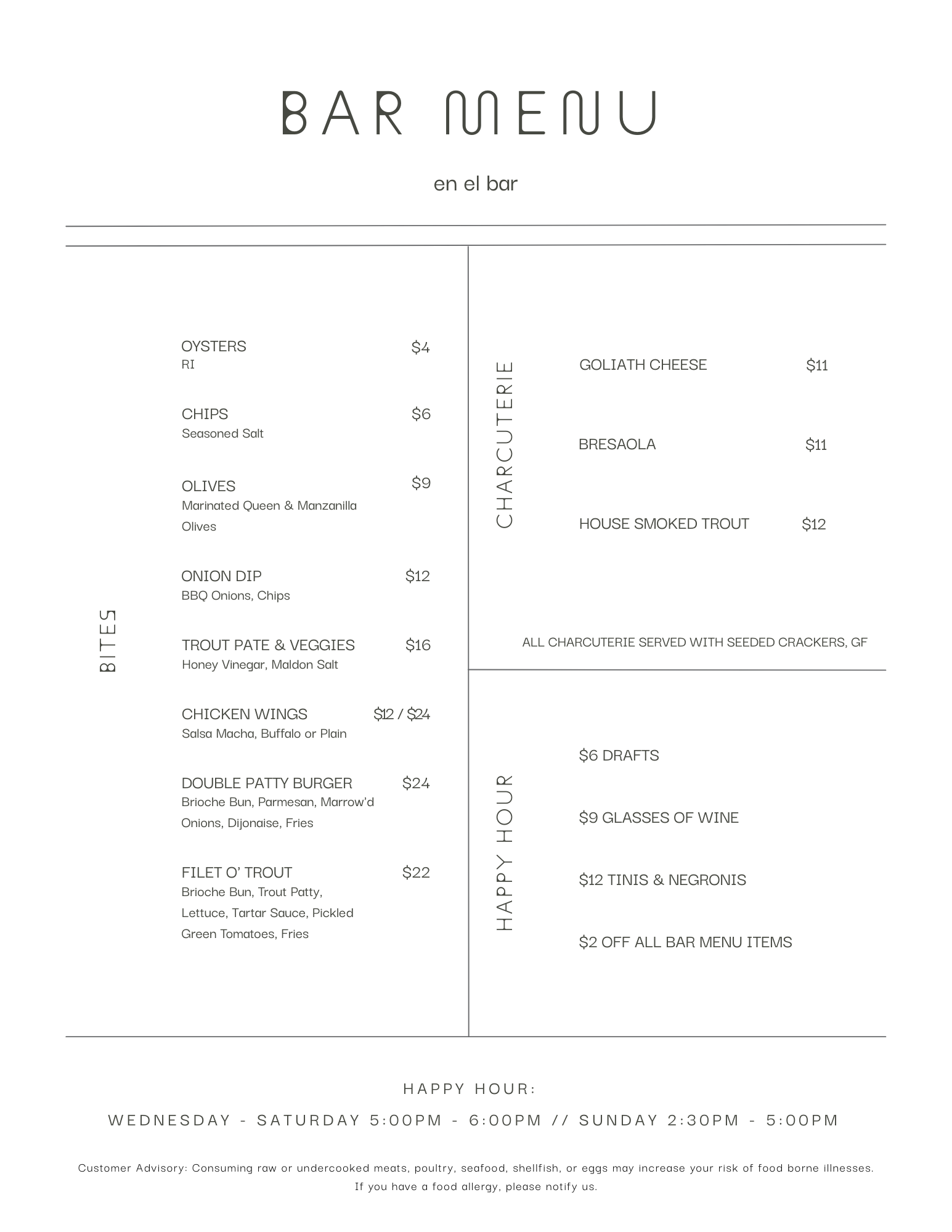 New Bar / Happy Hour Menu